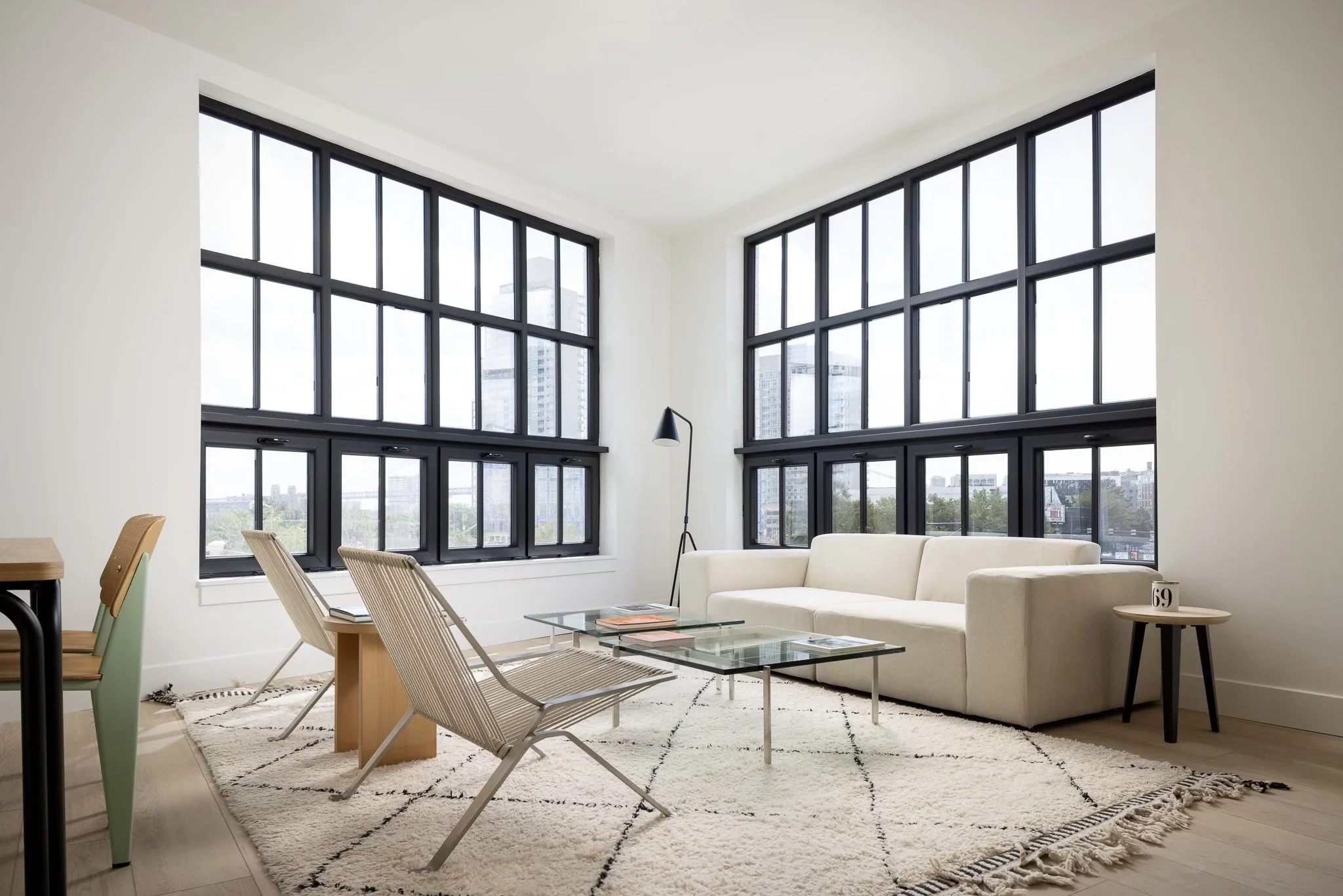 With immense architecturally-rich windows and styling, the design pays respect to the storied aesthetic of Fishtown's past, ensuring each apartment is bathed in natural light. Upper-level units showcase dramatic skylines and expansive views.